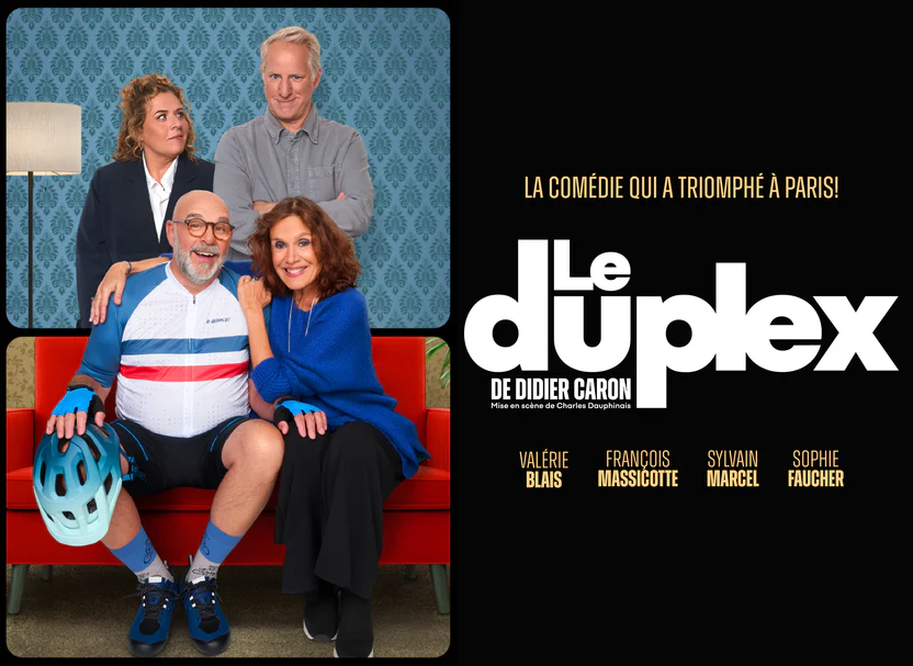 Salle Albert-Rousseau 2410 Ch Ste-Foy,Québec,Québec,CanadaComédie hilarante de Didier Caron, avec les excellents comédiens Sophie Faucher, Sylvain Marcel, Valérie Blais et François Massicotte, promet une bonne dose de folie, des éclats de rire… et des voisins qui n’ont rien vu venir! Le Duplex : évincer ses voisins n’a jamais été aussi drôle! Journée de l'évènement : Mardi L'heure de départ vous sera confirmée quelques […]